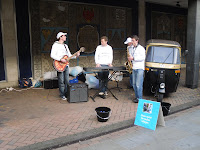 The weather in Cheltenham was wet and windy so not very good for busking. However, the determined Quoakle musicians still played quite a few jazz and other easy-listening songs.